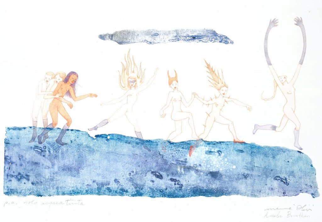 Intervento ad Acquarello di Amélie Barnathan su un’acquaforte di Memè Olivi, 2025