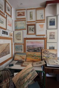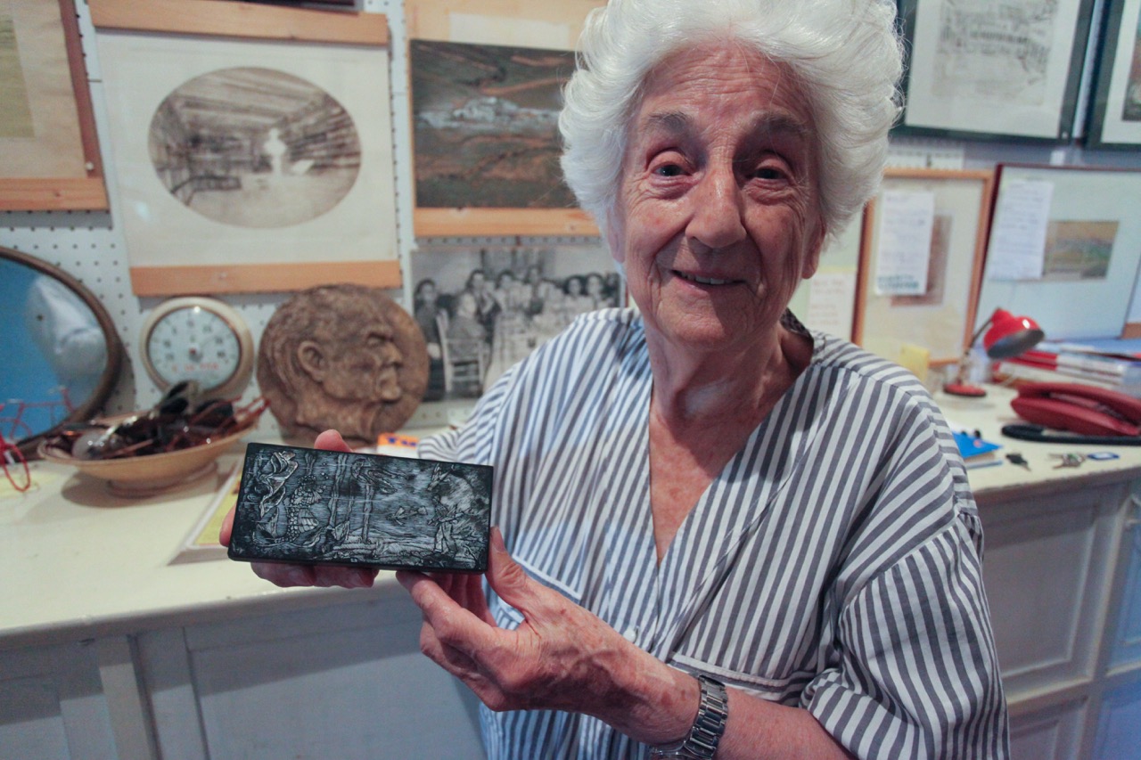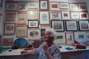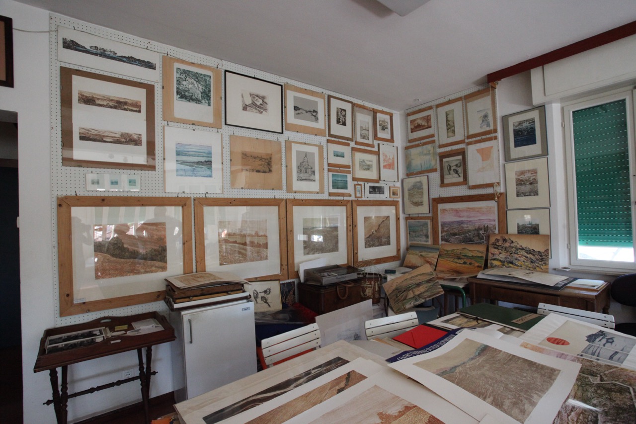 Il legame di Memè con la sua terra natia va oltre la semplice ammirazione per i paesaggi. Pur non tornando mai a vivere a Senigallia, rimane in contatto con numerosi artisti marchigiani, tra cui il fotografo Mario Giacomelli. In una lettera a lei dedicata, datata 1996, Giacomelli la descrive come “un’artista sensibile, disegnatrice magistrale, così vera nella sua espressione, nel temperamento, nel talento d’incisore da poter testimoniare la maturazione di un’arte e il rinnovamento di un’ispirazione”. Mario Giacomelli faceva parte di una corrente di fotografi marchigiani, l’Associazione Fotografica Misa, dal nome del fiume Misa che attraversa Senigallia. L’Associazione fu fondata da Giuseppe Cavalli, il critico d’arte, intelletuale e fotografo che diede vita anche al gruppo La Bussola a Milano e che immortalò la giovane Memè in uno splendido ritratto fotografico di profilo. Molti dei fotografi dell’Associazione, come l’avvocato Ferruccio Ferroni, anche lui senigalliese e grande amico di Memè, avevano in realtà altri mesteri. Giacomelli, poeta e pittore, riconosciuto a livello mondiale come uno dei più grandi maestri della fotografia e autore di meravigliosi paesaggi marchigiani, mantenne per anni la sua piccola tipografia nel centro di Senigallia. Tra l’altro stampò per Memè una serie di originali cartoline, che riproducevano dieci vedute della città di Senigallia. Anche la Scuola del Libro di Urbino rimane per Memè un importante punto di riferimento, un ambiente familiare dove tornare ogni estate. Nonostante possieda due torchi nella sua residenza a Bruxelles, l’artista non manca di utlizzare i torchi litografici presenti nella scuola, dove realizzerà anche numerose serigrafie.