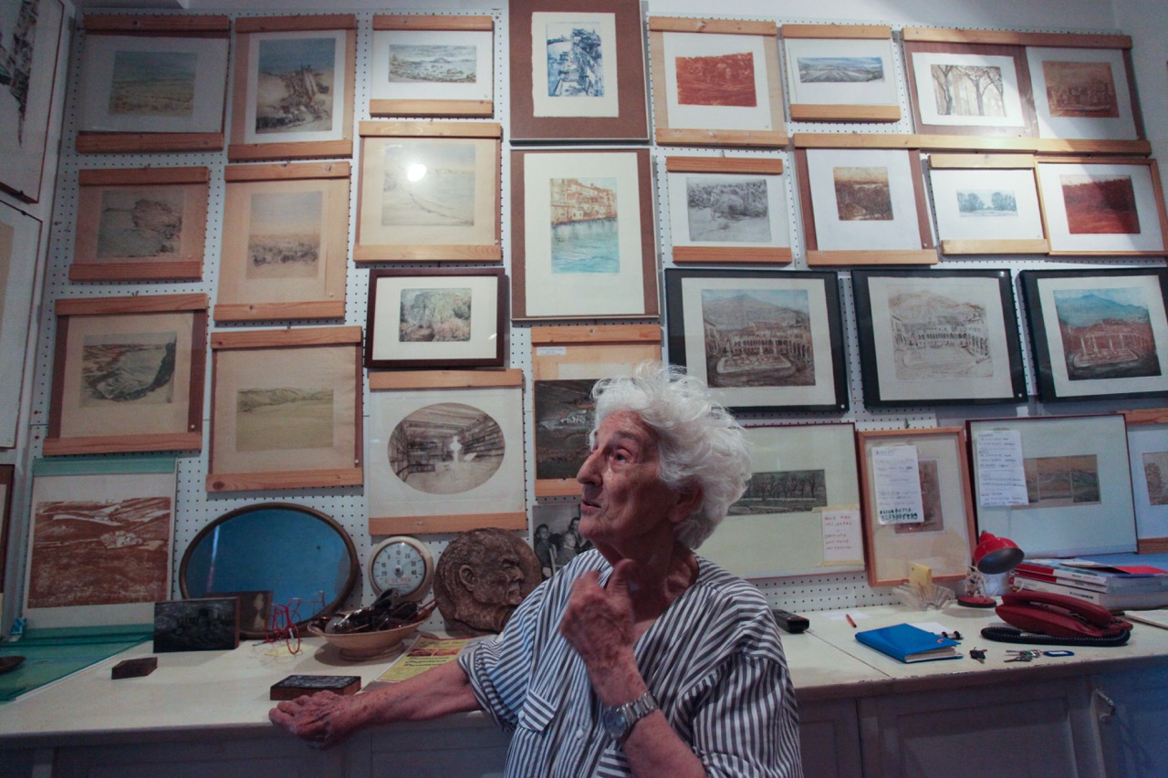 Nel frattempo, nel 1961, Bino Olivi assume un incarico di grande rilievo, diventando Portavoce della Commissione Economica Europea e Direttore Generale dell’Informazione. Solo qualche anno più tardi una delle figlie, Anna Maria, si iscrive all’Università Ca’ Foscari: per Memè è l’occasione per passare più spesso del tempo a Venezia e frequentare il laboratorio di incisione dell’Accademia di Belle Arti, dove conosce l’incisore e mosaicista Riccardo Licata. Nonostante le colline marchigiane continuino a essere la sua principale fonte di ispirazione, Memè è conquistata dalla bellezza di Venezia e dedica molte incisioni a vedute della cità lagunare.
