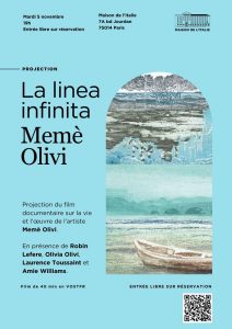 « La linea infinita » è un film di 39 minuti che esplora l’arte, la creatività e l’eredità familiare attraverso due generazioni di artiste: Memè Olivi, pioniera dell’incisione e della litografia, e sua nipote Amélie Barnathan, artista e illustratrice contemporanea. Il documentario analizza il modo in cui l’arte viene trasmessa da una generazione all’altra e l’impatto dei tempi sulla vita e sul lavoro di queste donne.