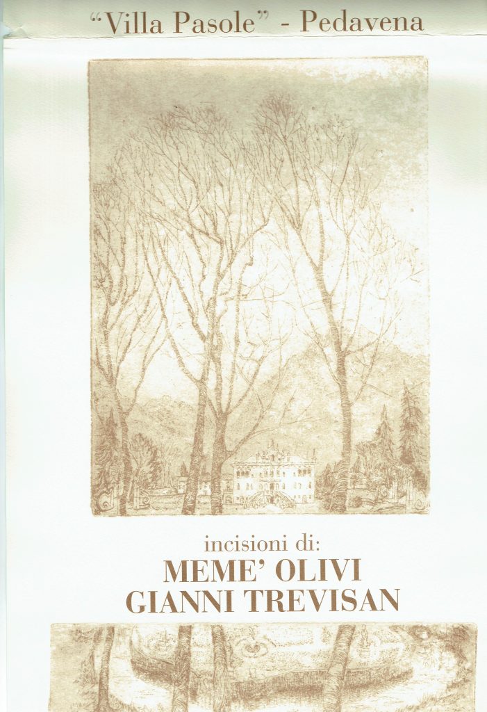 Pedavena, Villa Pasole, “Incisioni di Memè Olivi e Gianni Trevisan. Sculture di Gabriele Bonazza”.