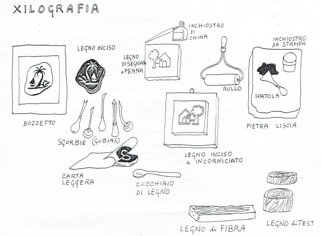 Con degli utensili particolarmente adatti a lavorare la superficie del legno si incide la parte chiara del disegno scavando più o meno profondamente in profondità i bianchi assoluti, scalfendo o incidendo leggeremente in superficie le parti del disegno a mezzo tono, in modo da creare un effetto di chiaroscuro più o meno intenso. Non si incidono le parti del disegno che devono rimanere nere. Si passa il rullo impregnato di inchiostro che prenderà sulle parti non incise.